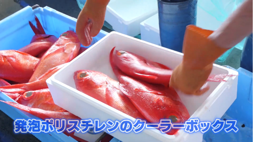 「とれた魚の鮮度を保つためには、発泡ポリスチレンのクーラーボックスも欠かせない。発泡ポリスチレンは熱を伝える性質が小さいから、外気温の影響を受けにくい」